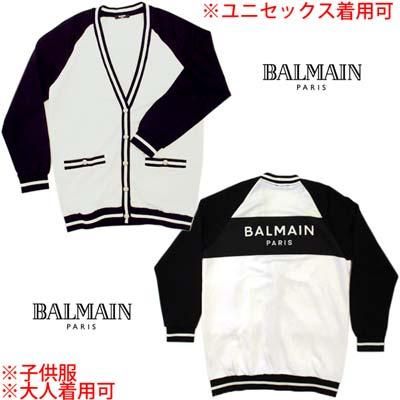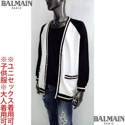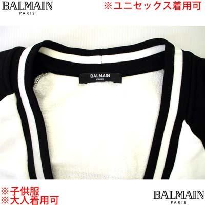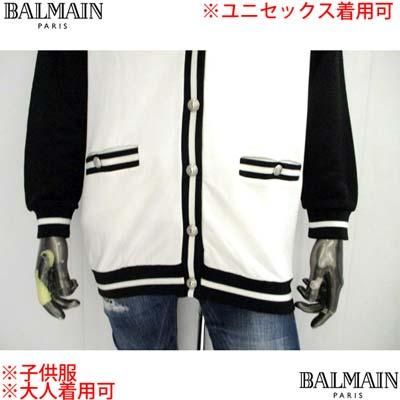BALMAIN バルマン キッズ カーディガン 子供服 ユニセックス 大人可 ツートンカラー Vネック ブランドロゴ ライオンボタン ブラックホワイト BU4A40 Z1869 100NE